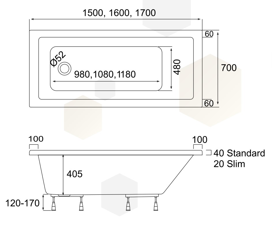 Külön rendelhető kiegészítő termékek: le- és túlfolyó, fejpárna, kádláb, kádparaván.