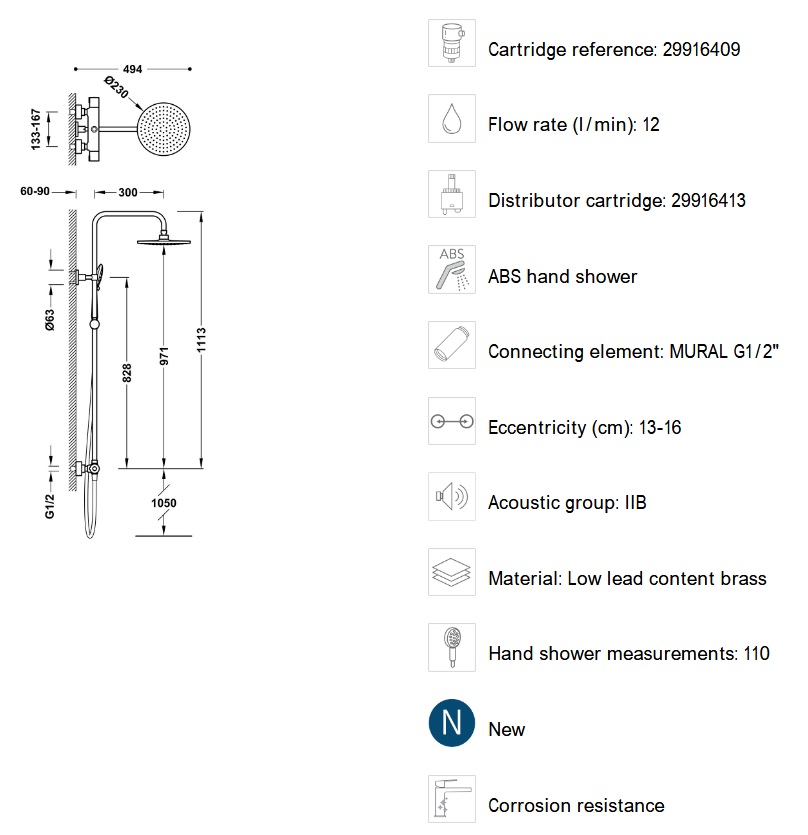 - Vízkőmentes, 3 funkciós kézi zuhany: Ø110 mm